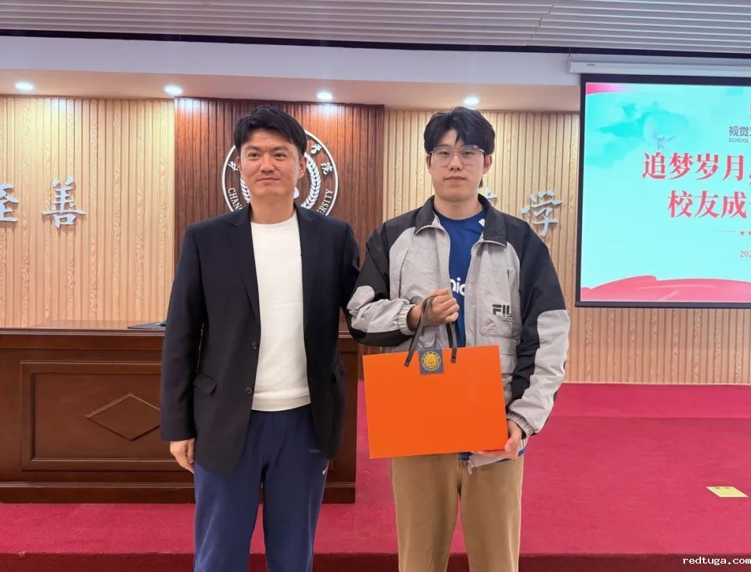 最后,由曹岩老师代表学院向吴泓轩校友致以诚挚的感谢,并赠送精心准备的礼物。这份礼物承载着学院对校友的深厚情谊,既是对校友多年来在专业领域辛勤耕耘、取得优异成绩的肯定,也寄托着学院希望校友与母校继续携手共进、深化合作的美好愿景。